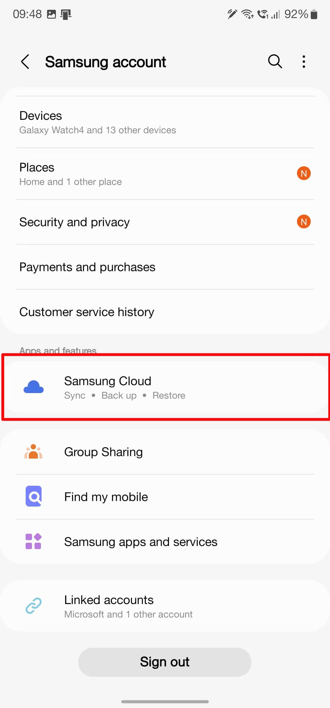 - Aşağı kaydırın ve Samsung Cloud’u açın.