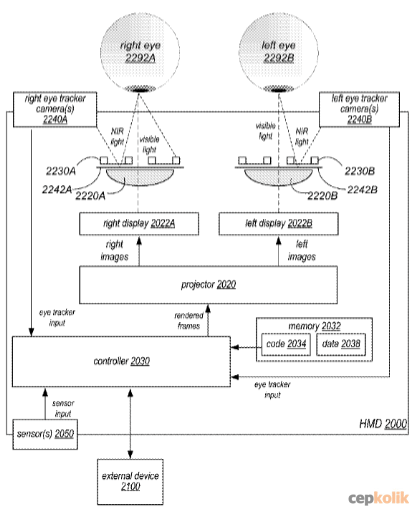 Bugün ortaya çıkan patent ise “Göz İzleme Sistemi” olarak adlandırılıyor ve “bir kullanıcının gözlerinin kafaya monte edilen bir ekranda hareketini ve konumunu algılar” şeklinde patentte teknoloji anlatılıyordu. NIR ışık ve sıcak aynaların yanı sıra kullanıcının yüzünün her tarafındaki göz izleme kameraları (bunlar NIR veya yakın kızıl ötesi kameralar) kullanılıyor.