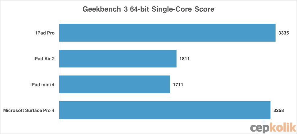 iPad Pro performans anlamında tabletler arasında kesinlikle rakipsiz. Fakat notebook ve ultrabooklar ile kıyasladığımız zaman orada durum değişiyor. Bir tablet ile notebook tabiki kıyaslanmamalı fakat şunu söylemeliyiz ki aynı fiyat aralığında iPad Pro’dan daha güçlü işlemci ve GPU’ya sahip taşınabilir bilgisayarlar var.