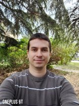 Mükemmel selfie! Yukarıdaki fotoğrafta görebileceğiniz gibi burada çok net ve bulanıklaşmayan çok fazla ayrıntı var. Resmin bir bütün olarak pozlanması mükemmel ve renkler de gerçekçi ve doğal. George’un yüzünde korunmuş, yüz yapısının ve özelliklerinin tanımlanmasına büyük ölçüde yardımcı olan sayısız gölge ve vurgu var. Arka plan iyi pozlandırılmış ve aynı zamanda doğal görünen çekici bokeh efektlerine de sahip. Genel olarak S10+, Selfie savaşında ilk raundu kazan taraf.