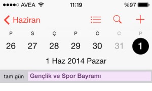 Önceden, haritasında sorun olan iOS, bu sorununu düzeltmişti. Ancak şimdi de 19 Mayıs bayramını 1 Haziranda göstermeye başladı. Apple’ın Türkiye şubesi açılmasına rağmen, Apple hala bizim bayramlarımızı tam olarak bilmiyor!