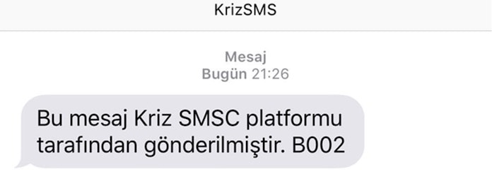 “Bu mesaj kriz SMSC platformu tarafından gönderilmiştir” B002