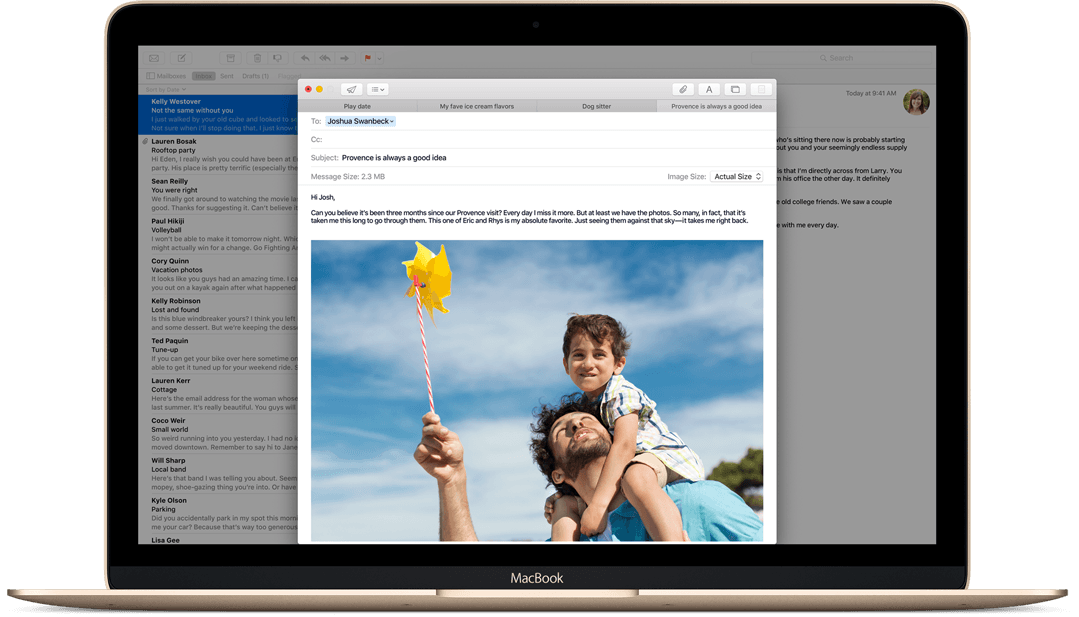Mail kutunuza biraz önce ne geldiğini kontrol edin Hızlı bir performans için maillerinizi tam ekran ve bölünmüş ekranlarda kullanma olanağı sağlar, ayrıca OS X maillerinizi yönetmenize kolaylık sağlamak için takvim, iletişim bilgileri, buluşma tarihleri gibi bilgileri özel bir yerde depolayarak hızlı erişim olanağı sağlar.