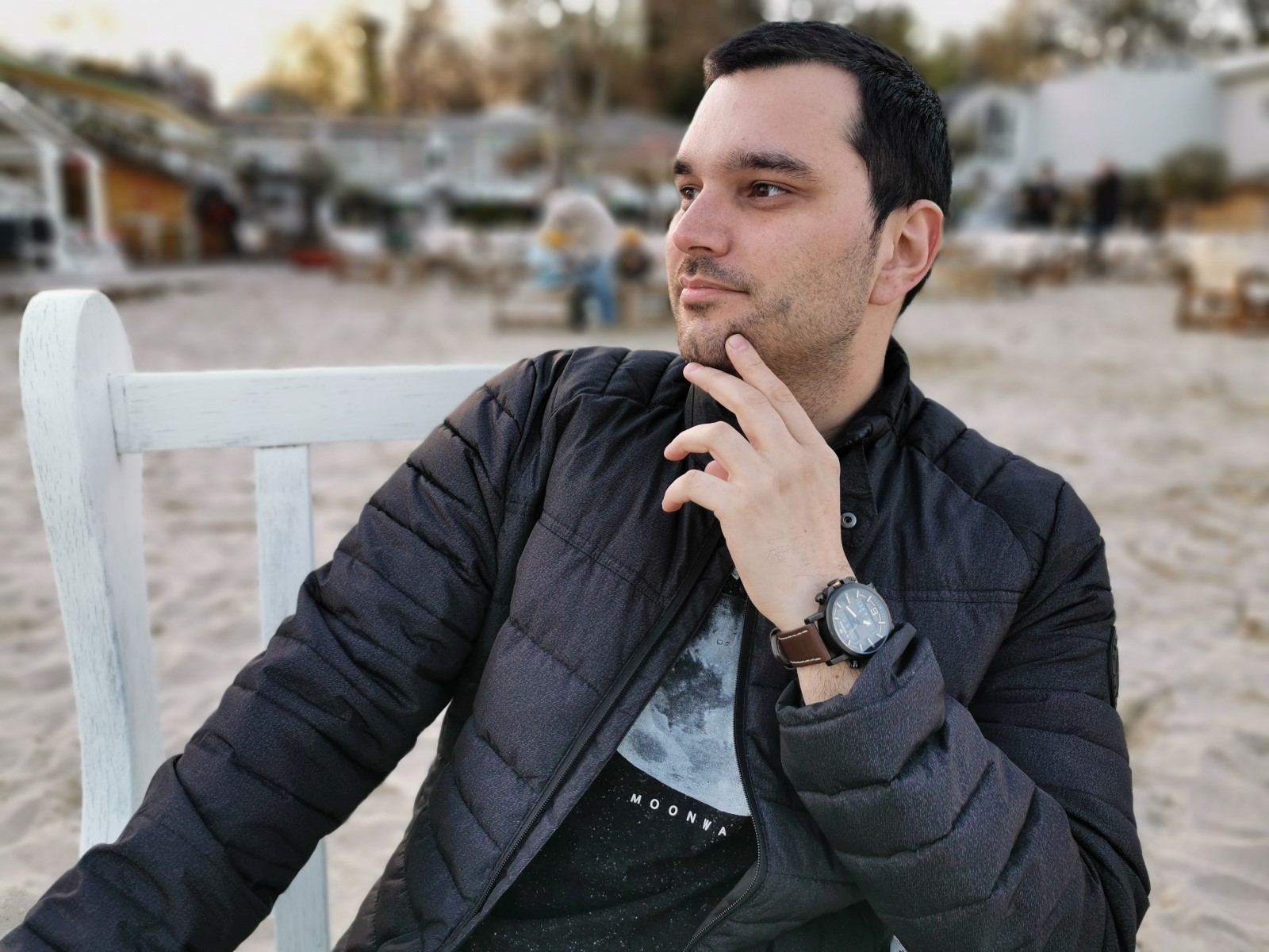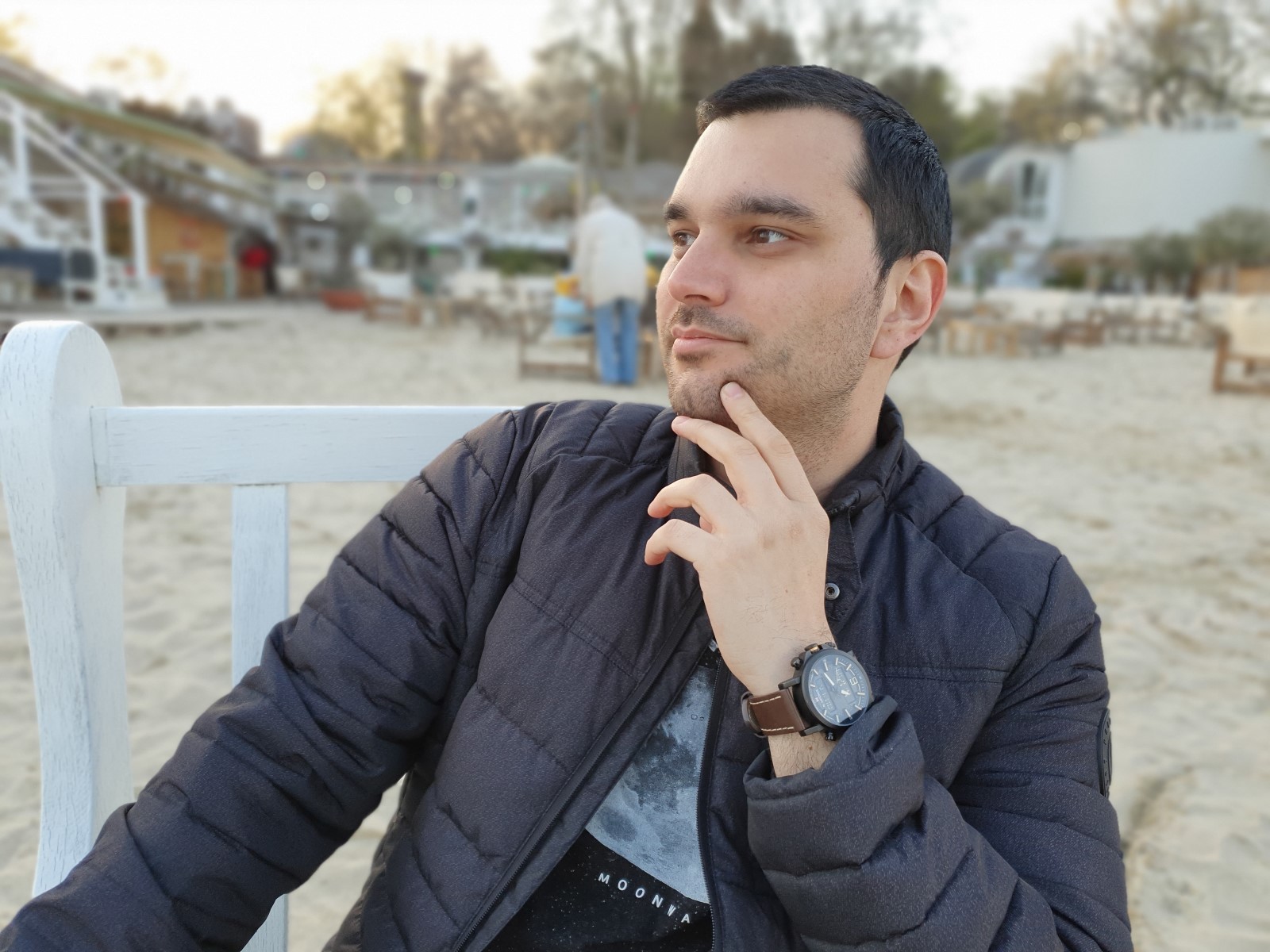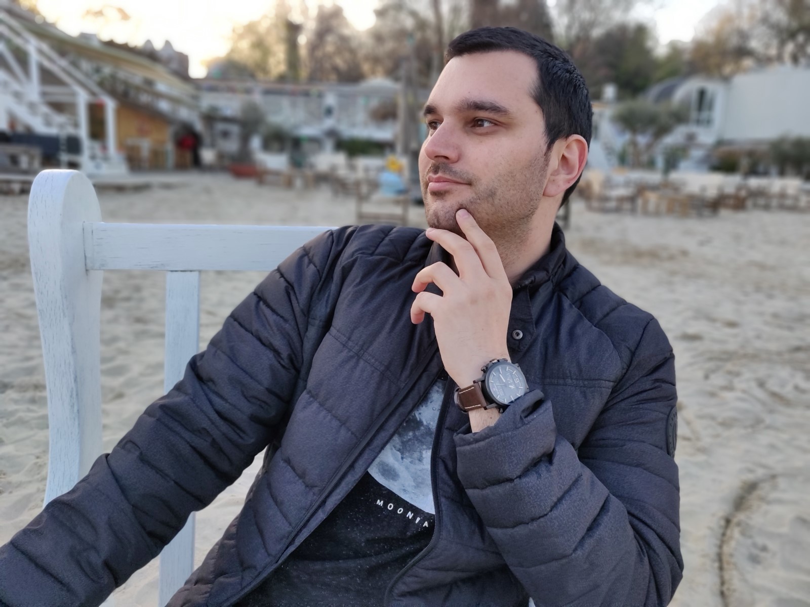 Deniz kıyısındaki bir kafenin bu fotoğraf köşesine geçtiğinizde, lensin bir portre çekimi yaratmadaki büyük rolünü bir kez daha görüyorsunuz. iPhone’daki telefoto objektif hoş, orantılı bir görüntü ile dikkat çekiyor.