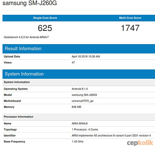 Yeni bir Samsung akıllı telefon bugün bir benchmark listesinde görüldü. Geekbench’te SM-J260G olarak listelenen yeni cihaz Güney Koreli şirketin ilk Android Go girişimi olabilecek bir giriş seviyesi akıllı telefon olması bekleniyor.