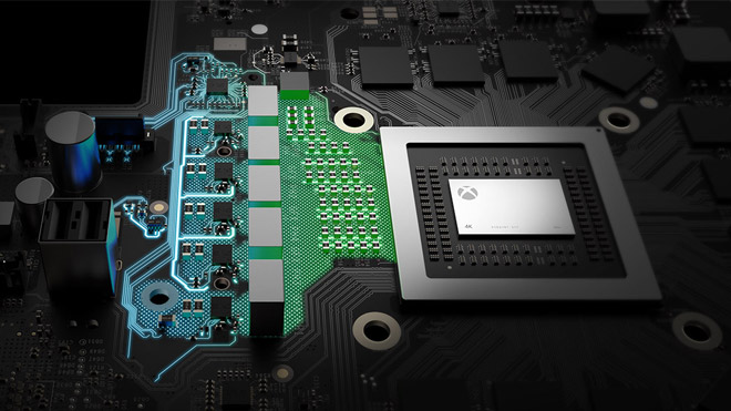 Xbox One X: 2.3 GHz 8 çekirdek AMD işlemci, 6 teraflop AMD grafik kartı, 12 GB GDDR5 Ram