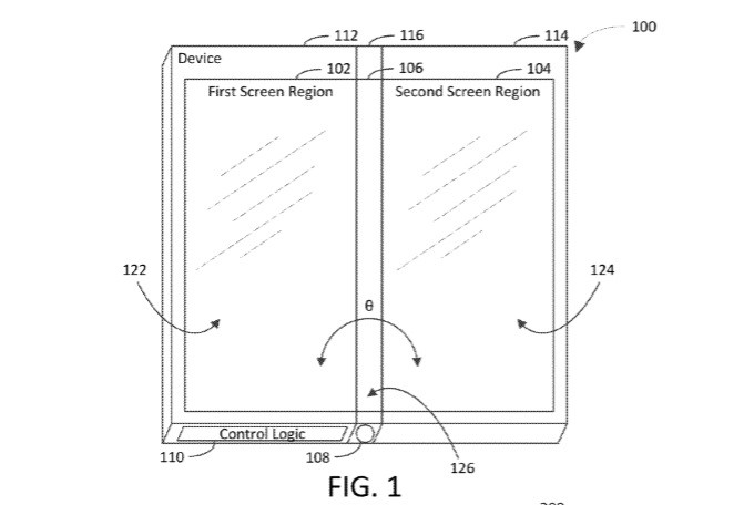 Patent, cihazın başlangıçta iki ana gösterge alanı arasında bulunan menteşenin durumunu belirleyeceğini ve bunun tam olarak açıldığında, tamamen açıldığında veya açıldığında bilinebileceğini ima etmekte. Daha sonra, menteşenin (ve dolayısıyla, iki ana göstergenin) konumuna bağlı olarak, üçüncü ekran bölgesi, daha büyük ekranların doğrudan ya da her ikisiyle de ilişkili olabilecek ilgili bilgileri gösterecek.